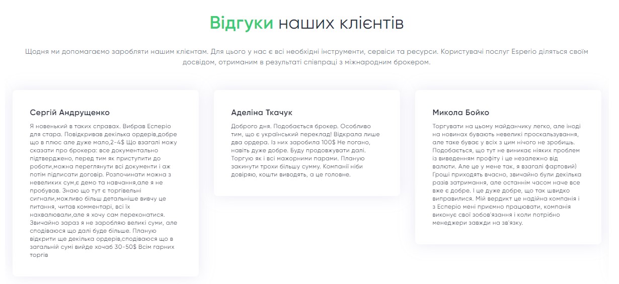 Ось, що пишуть трейдери про брокера Esperio, відгуки яких можна знайти на багатьох трейдерських форумах: