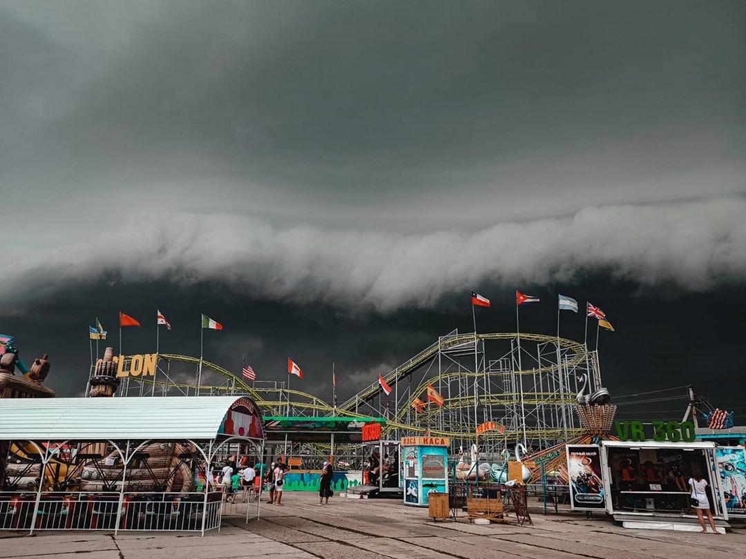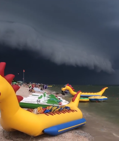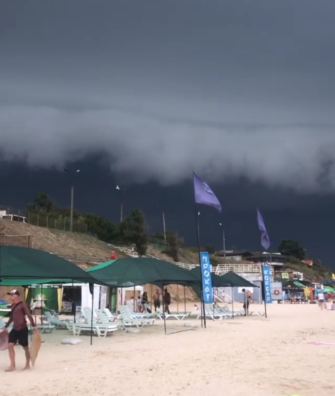 Хмара виглядала настільки зловісно, що обережні відпочиваючі поспішили сховатися в приміщеннях. Сміливі ж залишилися на березі, щоб насолодитися дивовижним видовищем і зняти його.