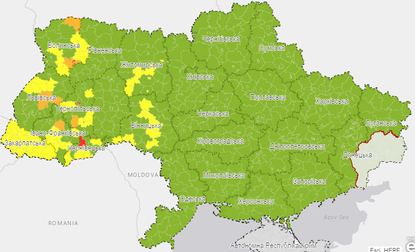 Зазначимо, що на мапі Центру громадського здоров'я станом на ранок 8 серпня Луцьк і Тернопіль поки що позначаються як "червона" зона, Харків - вже у "зеленій".