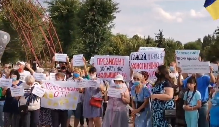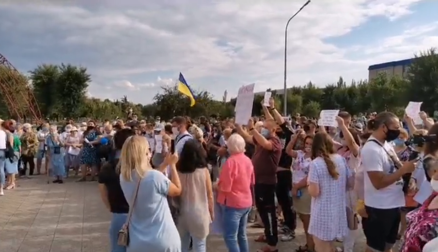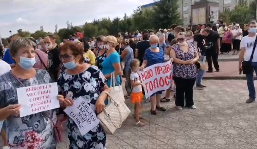 Сьогодні, 10 серпня, в Сєвєродонецьку на площі біля Луганської облдержадміністрації проходив мітинг проти скасування місцевих виборів у низці ОТГ регіону.