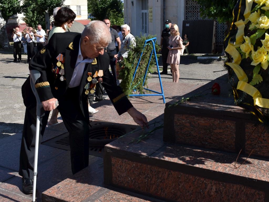 Керівник військово-цивільної адміністрації міста Лисичанськ Олександр Заїка, звертаючись до присутніх, висловив найщиріші слова подяки ветеранам за силу духу і мужність, за життя і світле майбутнє, подароване всім наступним поколінням та запропонував хвилиною мовчання вшанувати пам’ять усіх, хто загинув на полі бою, знаходячись у полоні, у партизанських загонах, пам’ять мирних мешканців та тих ветеранів, чиє життя обірвалось уже в мирних час.