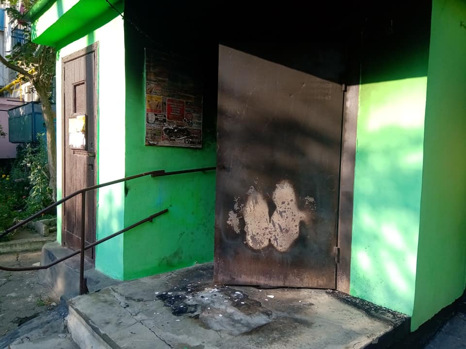 "Сьогодні, близько години, ночі невідомі особи підперли двері під'їзду д. 8 кв. 40 років Перемоги великою шиною і підпалили її. Жителі, які почули запах гару, викликали службу ДСНС і поліцію. В результаті пожежі завдано збитків тільки відремонтованому ґанку під'їзду, але це ніщо в порівнянні з тим, що могло статися, якби люди вчасно не відреагували на цю подію. На сьогоднішній день адміністрація ЖЕКу подала заяву в поліцію для виявлення винних і відшкодування збитків ", - повідомили комунальники.