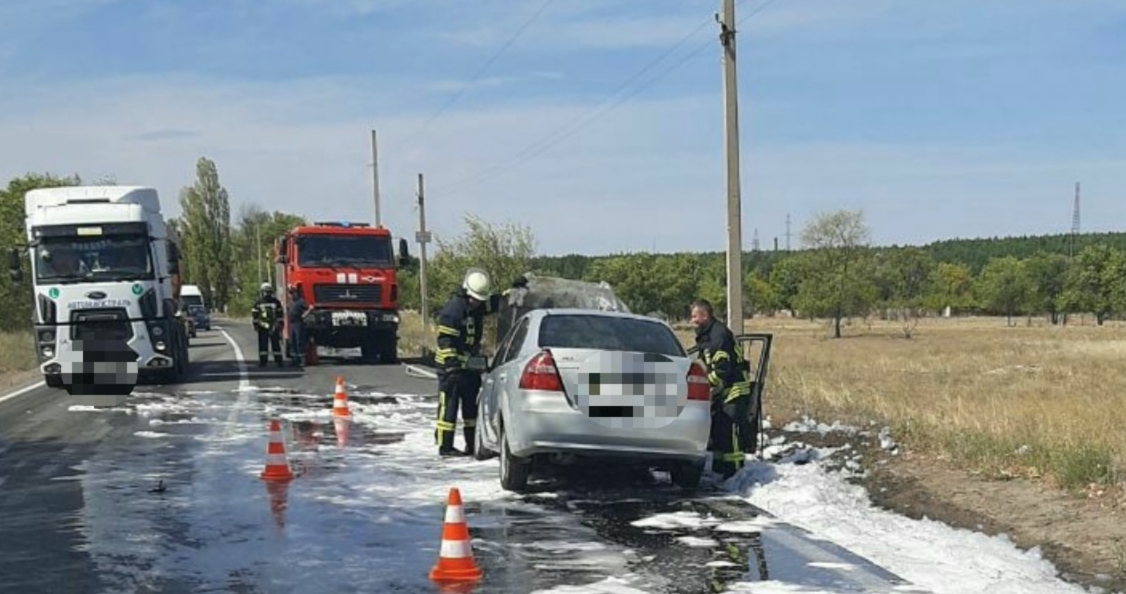 У автомобіля ЗАЗ Vida загорілася передня частина. Водійка і пасажирка, які виявилися матір'ю і дочкою, встигли самостійно вийти з автомобіля і не постраждали.