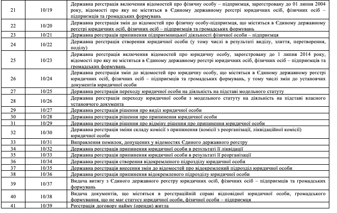Повний перелік актуальних послуг наведено нижче в таблиці.