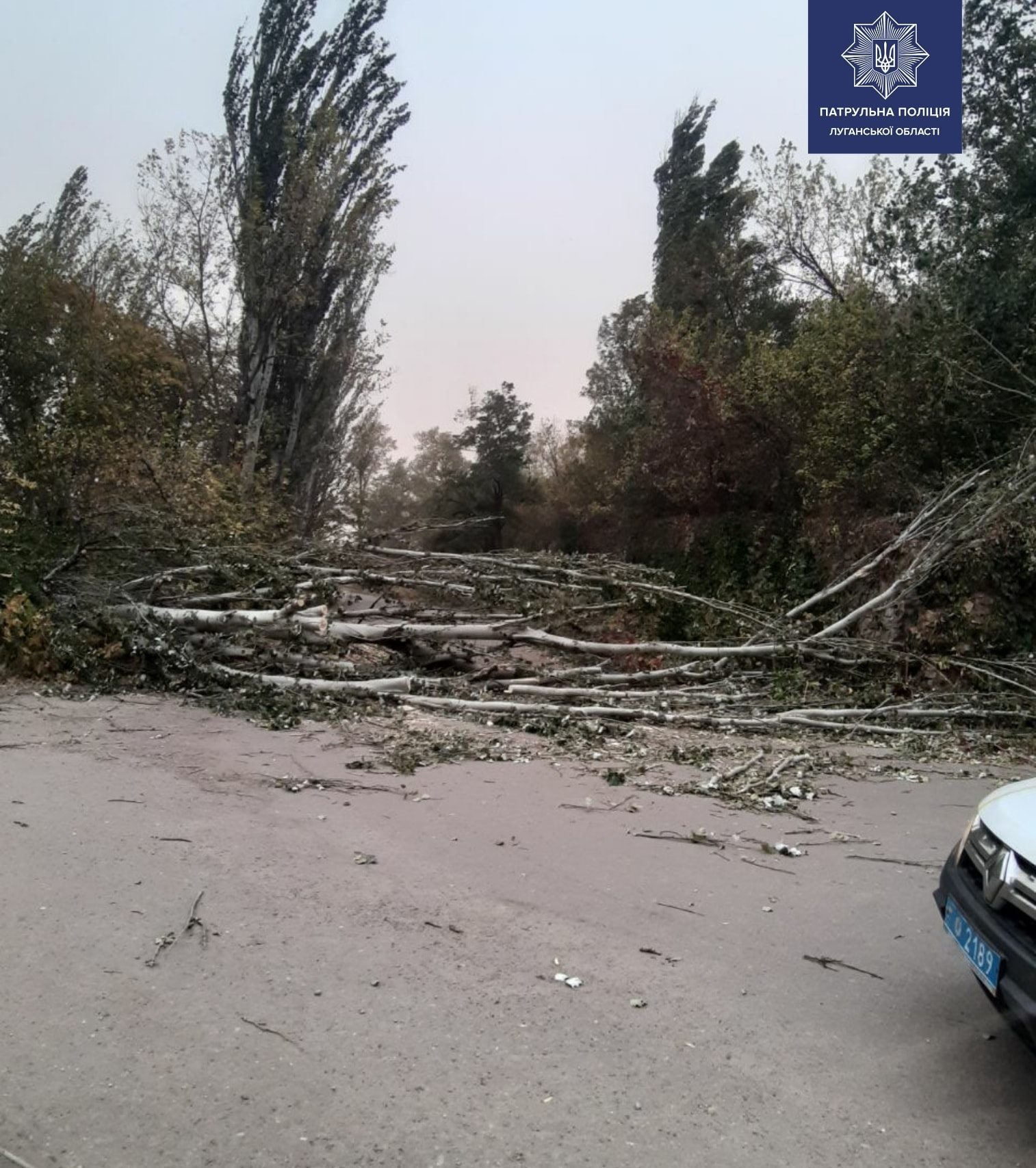 Патрульна поліція Луганської області повідомила, у яких районах Лисичанська дерева впали на дороги, передає Час Пік.