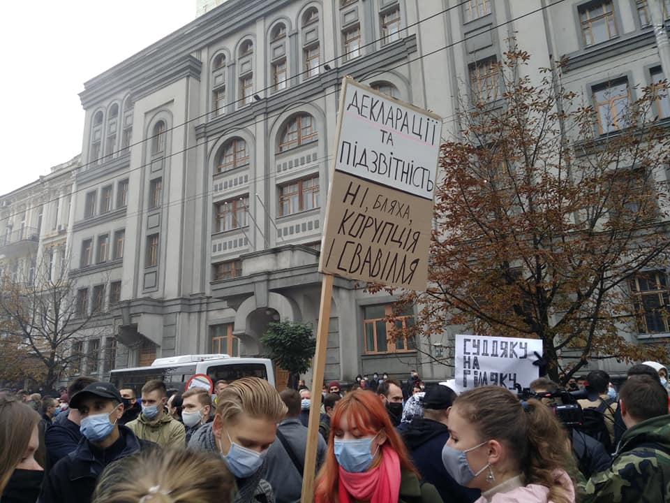 30 жовтня в Києві біля будівлі Конституційного суду України проходить акція протесту через рішення суддів про скасування кримінальної відповідальності за недостовірне декларування та низки повноважень НАЗК.