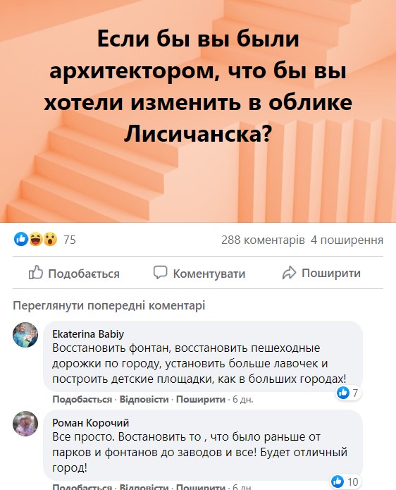 - У місті немає господаря, немає грошей. Питання: хто це буде робити і кому це треба. Відповідь: нікому, - пише Віталій Бровенко в коментарі під постом редакції "Час пік" про те, як лисичани хотіли б змінити вигляд міста.
