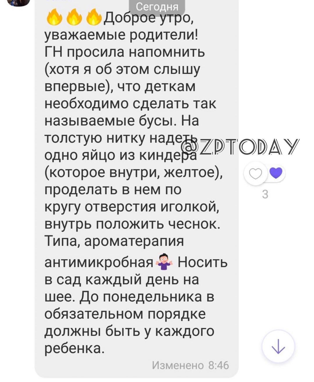 Місцевий паблік zptoday опублікував в Instagram скріншот повідомлення з батьківського чату, передає Час Пік.