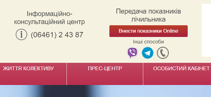 - багатоканальний номер (0645) 70 80 80 (номер працює виключно для прийому показань лічильників в останні два і перші три дні місяця);
