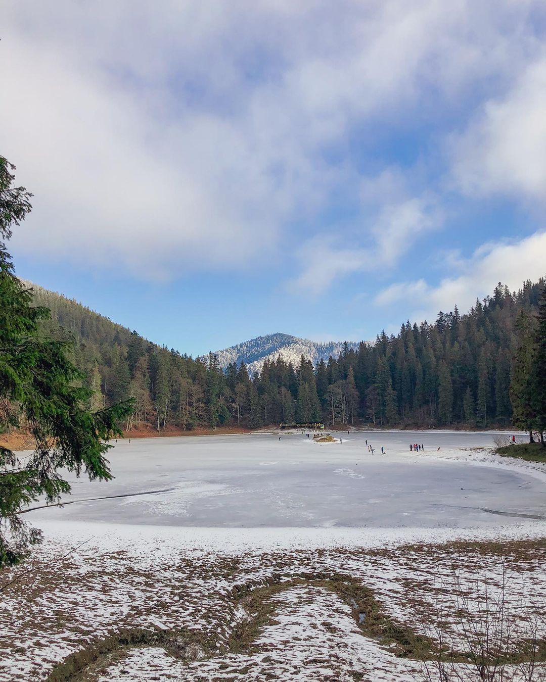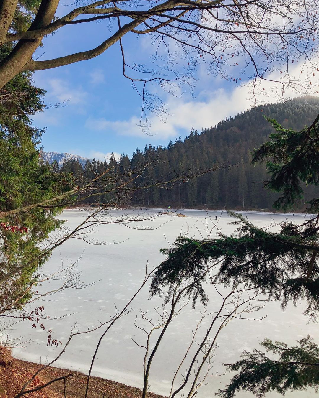 В українських Карпатах вдарили морози, і найбільше гірське озеро країни - Синевир - повністю замерзло.
