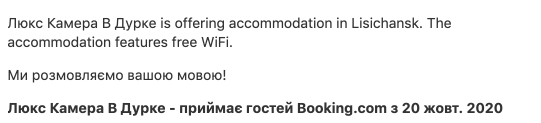 Хтось, чиє ім'я залишається невідомим, вирішив влаштувати хохму і виклав на Booking.com інформацію про те, що в Лисичанську можна "зупинитися" в "дурці", яка розташовується в школі №8. Можливо, це учні школи (цієї чи іншої) вирішили таким чином підняти собі настрій. Хтозна! Однак про Лисичанську з "позитивного" боку тепер може дізнатися будь-який користувач сервісу з будь-якої точки світу.