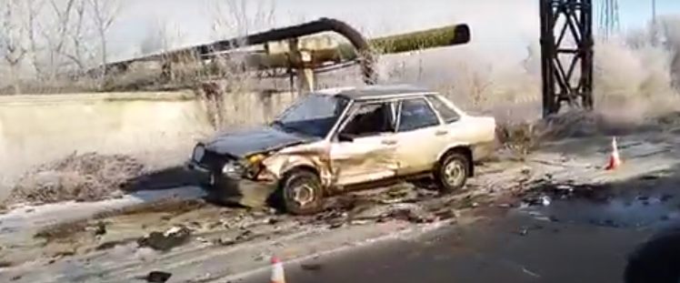 Виходячи з відео, можна припустити, що удар був значний: у ВАЗ пом'ято крило, капот і водійські двері.