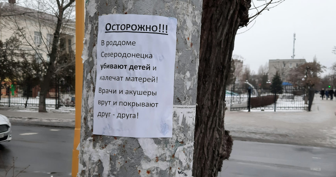 У Сєвєродонецьку хтось, чия особа залишилася невідомою, розклеїв листівки з інформацією про те, що лікарі пологового будинку "вбивають дітей та калічать матерів".