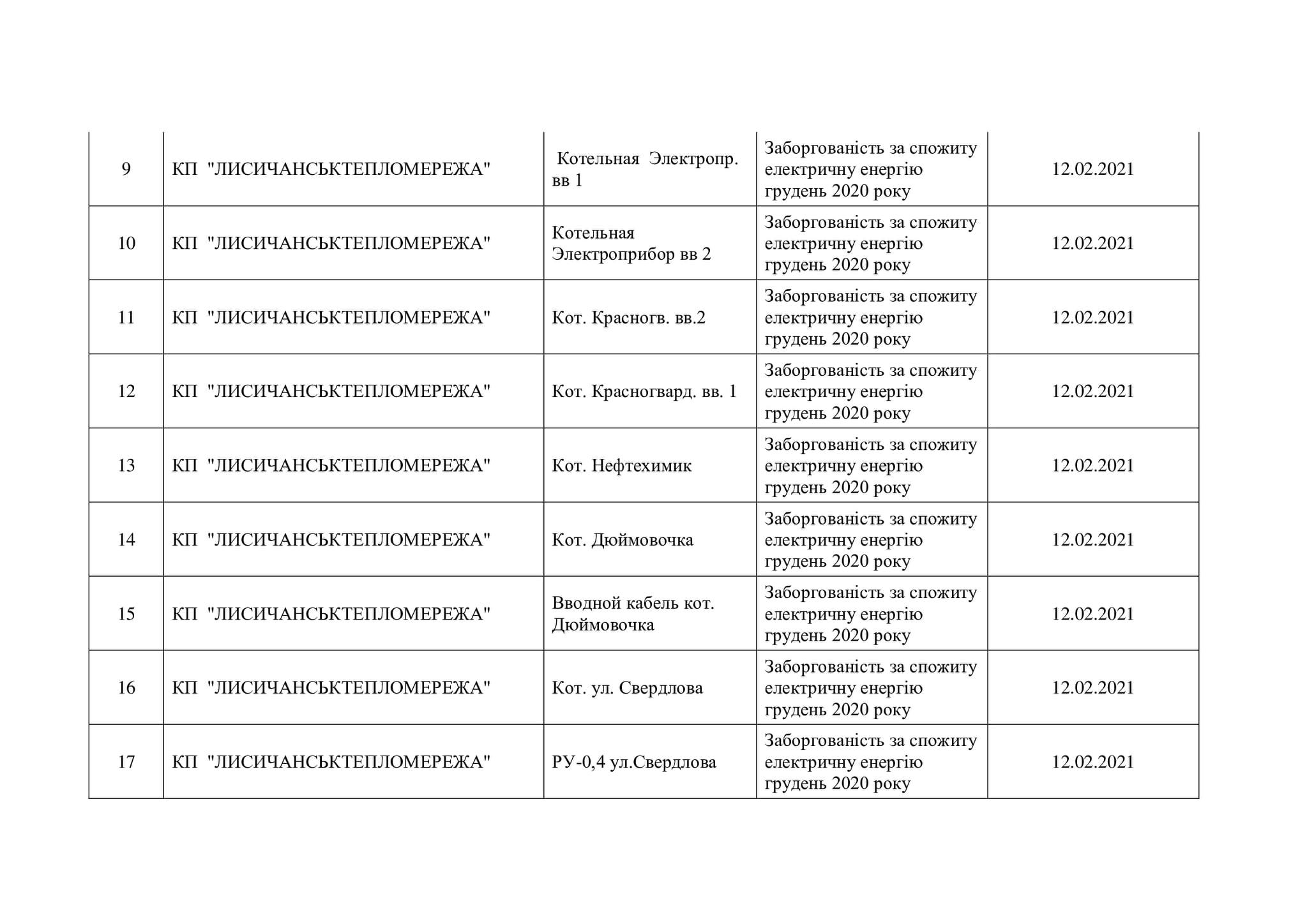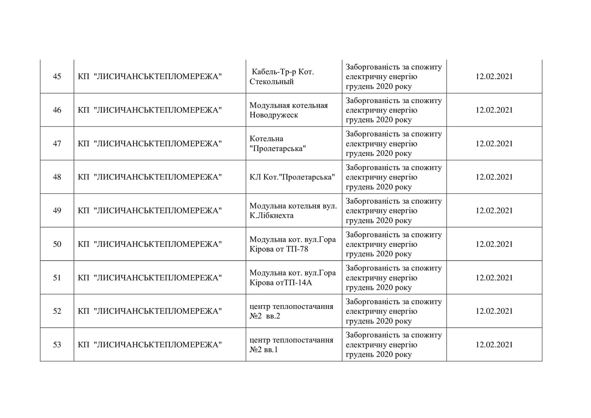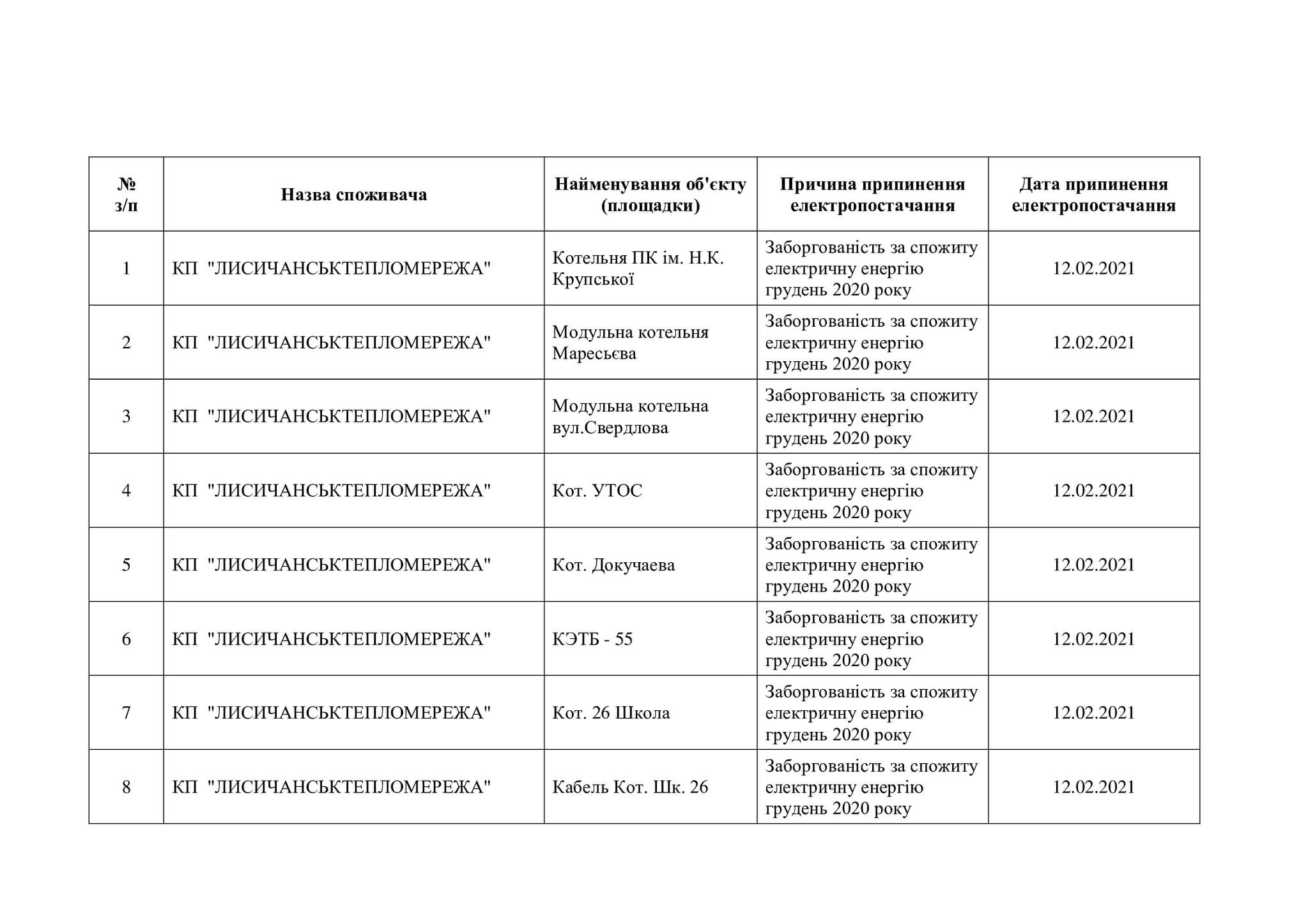 "Змушені 12.02.2021 року знеструмити усі об'єкти КП "Лисичанськтепломережа" за заявкою компанії-постачальника електричної енергії ТОВ "ЕНЕРА СХІД", - йдеться в повідомленні.