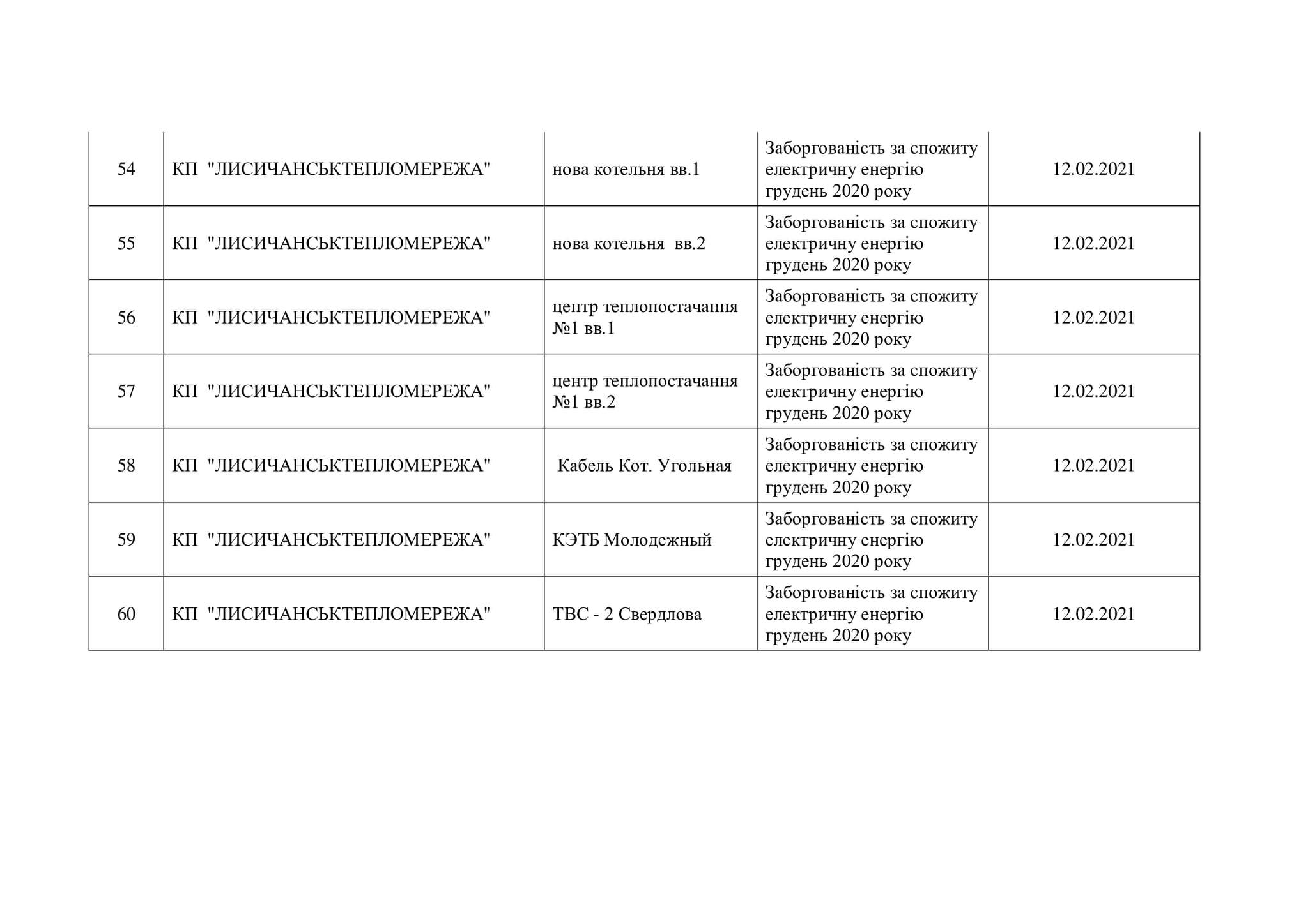 Згідно з листом ТОВ "ЕНЕРА СХІД", причиною знеструмлення є заборгованість "Лисичанськтепломережі" за спожиту електроенергію за грудень 2020 року.
