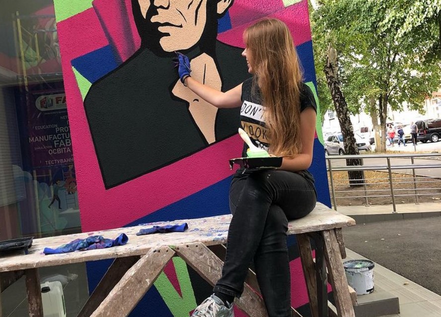 Теж будує стосунки з містом, але трохи в інший спосіб, митець, вирішуючи креативно прикрасивши стіну будинку і намалювавши на ній мурал . Так харківську радянську багатоповерхівку прикрасив кит художниці Насті Худякової, а стіни довкола фаблабу ХНЕУ – портрет Ілона Маска учасників Дуже Цифрових Резиденцій.