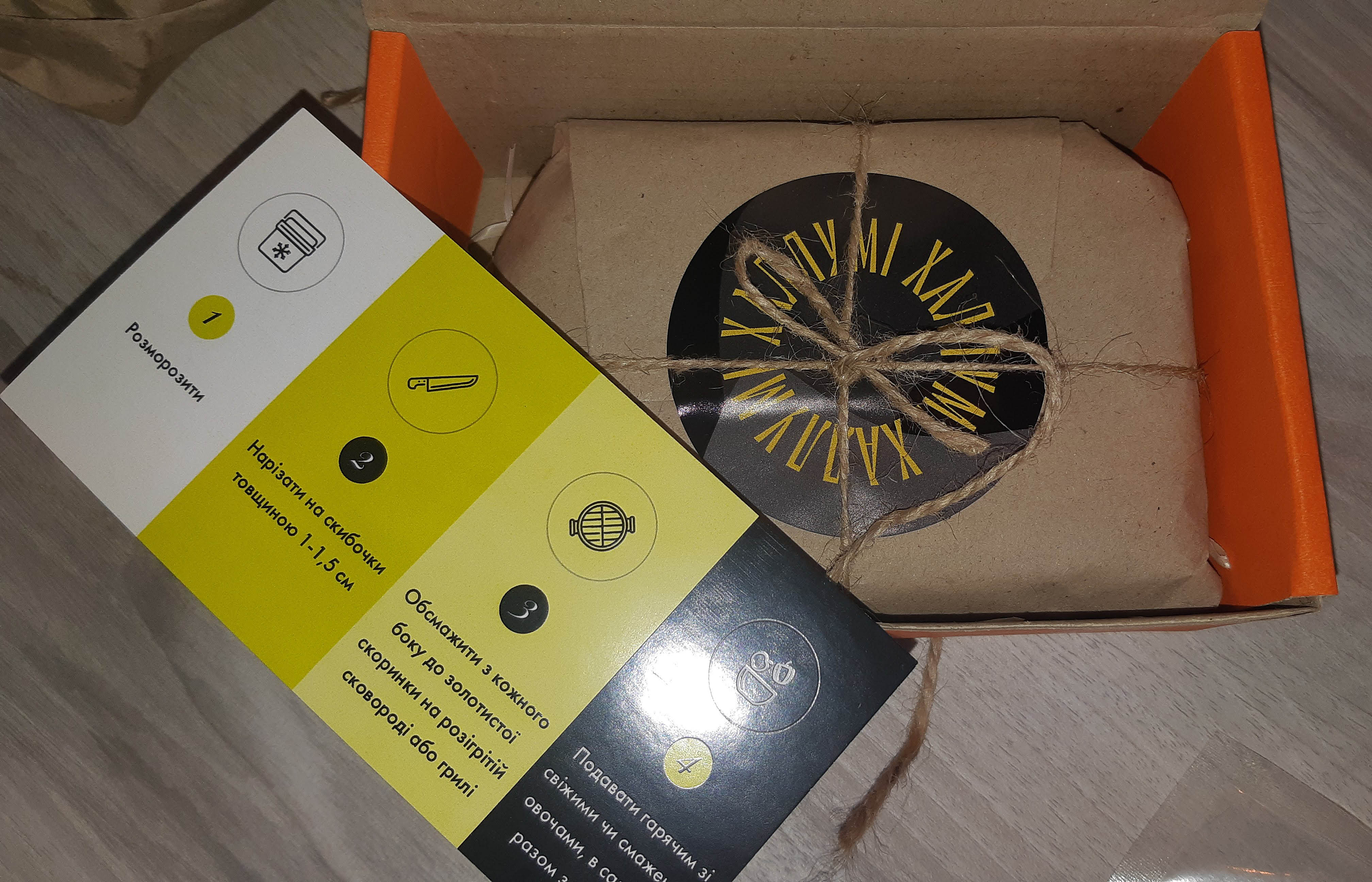Ще одна ферма на Донеччині славиться авторськими сирами - «Скажи Cheese». Ми спробували халумі цієї сироварні. Сир був в подарунковій упаковці, всередині - покроковий рецепт приготування його на грилі.
