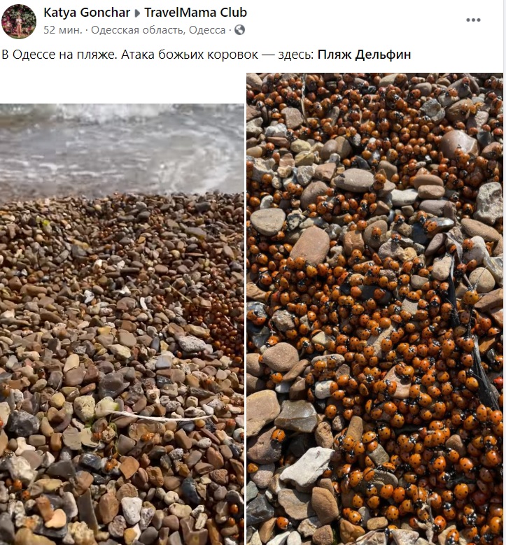 У самий розпал відпочинку на одеських пляжах з'явилися незвичайні комахи - сонечка. Вони буквально атакують морський берег, "перекриваючи" доступ до води.