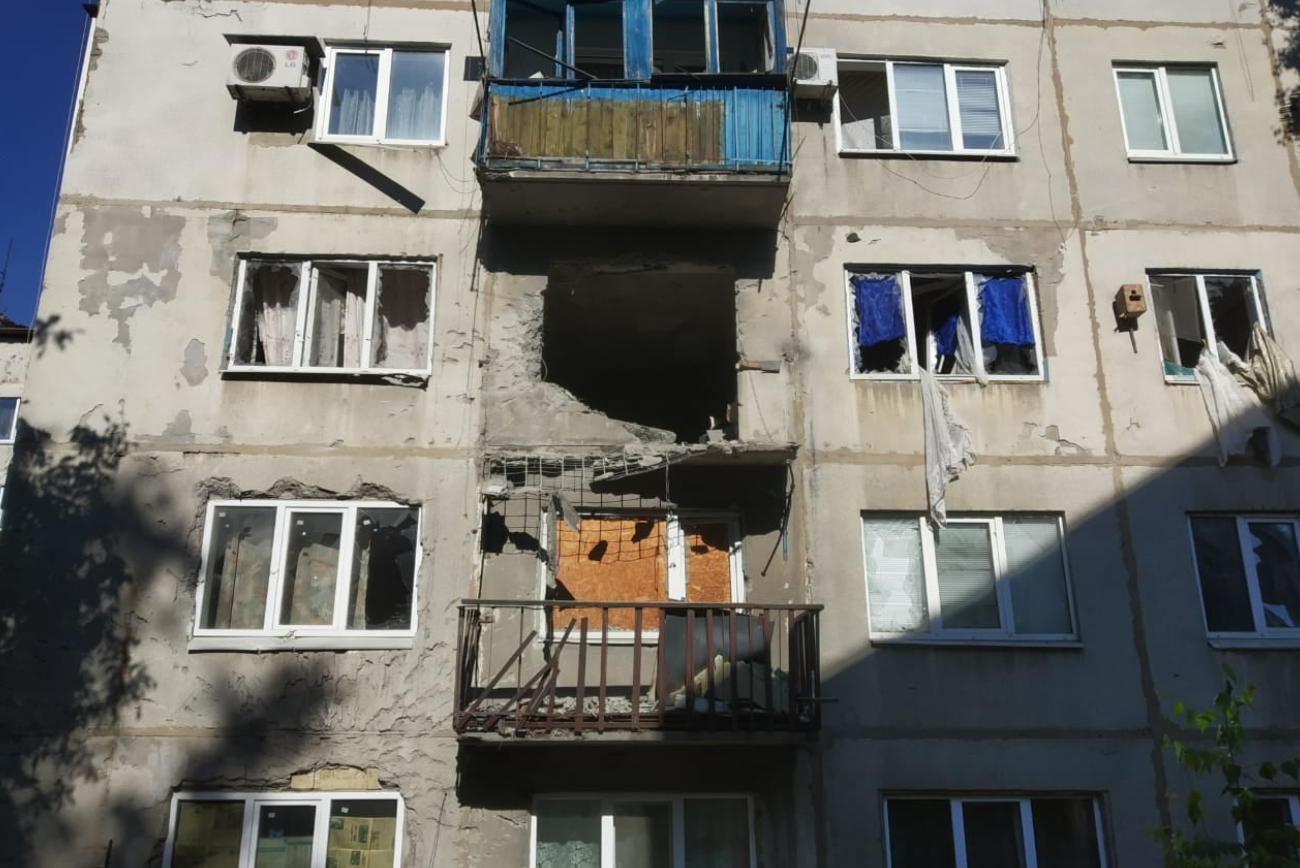 Як повідомляє керівник Донецької обласної державної адміністрації, керівник місцевої обласної військово-цивільної адміністрації Павло Кириленко, прямим попаданням була пошкоджена квартира у багатоповерхівці на вулиці Східній, поранено чоловіка 1965 р.н.