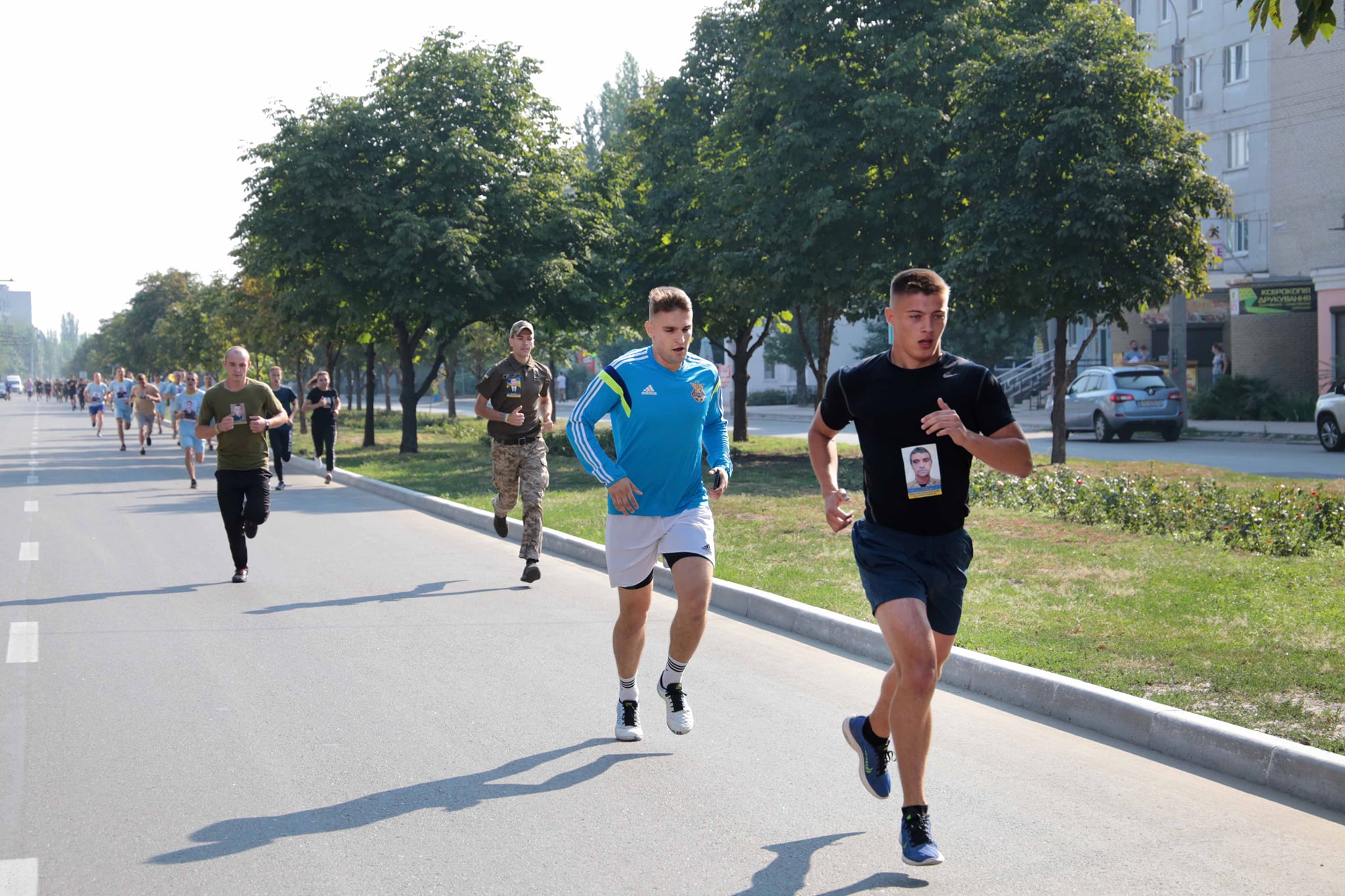 Учасники пробігли дистанцію із закріпленими на футболках фотографіями з іменами героїв, які віддали життя в боротьбі за незалежність, суверенітет і територіальну цілісність України.