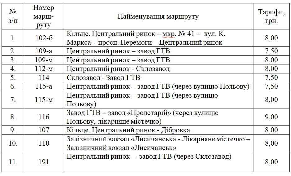 Згідно з документом, послуги з перевезення пасажирів на автобусних маршрутах загального користування, які надаються приватним підприємством «Люксавто-СДК», подорожчають на 1 гривню.