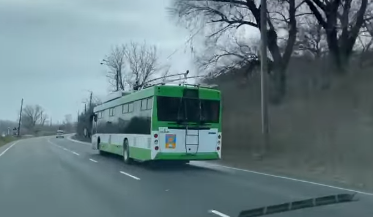 Варто зазначити, що на міжміському маршруті курсуватимуть тролейбуси з можливістю автономного ходу. На відео видно, що "роги" тролейбуса опущені. При цьому контактних проводів на цій ділянці дороги поки що не видно.