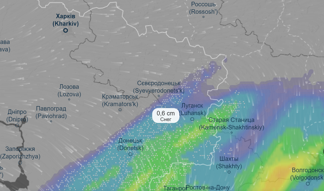 За даними ресурсу ventusky.com, сніг на Луганщині йтиме в ніч на 1 грудня, вранці припиниться, а потім ближче до вечора піде знову.