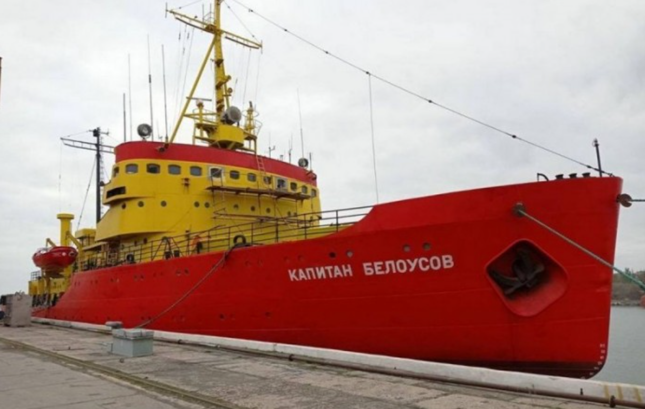 Довідка: криголаму "Капітан Білоусов" 68 років, його було побудовано на Гельсінській судноверфі "Вяртсила" та введено в експлуатацію і включено до складу Мурманського Арктичного пароплавства у 1954 році. У 1973 році судно було передано до Азовського морського пароплавства, а у 1994 році - передано Маріупольському торговому порту.