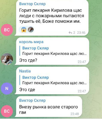 Також 4 червня близько 23.00 у місцевих пабликах з'явилася інформація, що через обстріл згоріла пекарня "Хлібний будинок Кирилова".