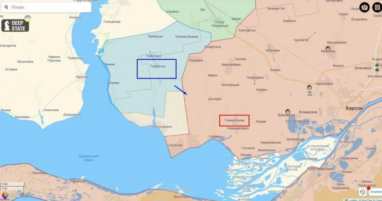 "Збройні сили України просунулися ще на 5 кілометрів від Таврійського. Ми наближаємося до Томіної Балки, а це 20 кілометрів до Херсона, де якраз знаходяться орки. Зараз бої йдуть між Таврійським та Томіною балкою", - повідомив Хлань.