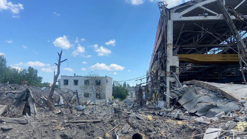 Розбито, зокрема, будівлю, а на території заводу залишилася вирва від вибуху.