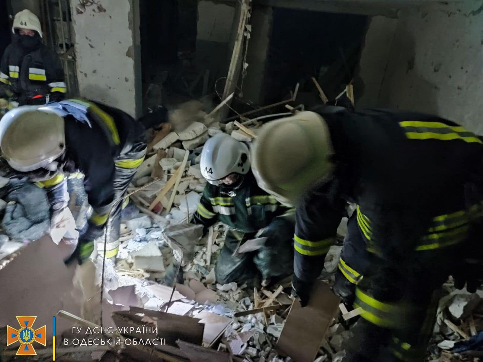 Нагадаємо, що близько 01:00 в результаті влучення однієї з ракет відбулася часткова руйнація дев'ятиповерхового житлового будинку в смт в Білгород-Дністровському районі. У будинку почалася пожежа з подальшим займанням прибудованого до нього магазину на площі близько 20 м кв.