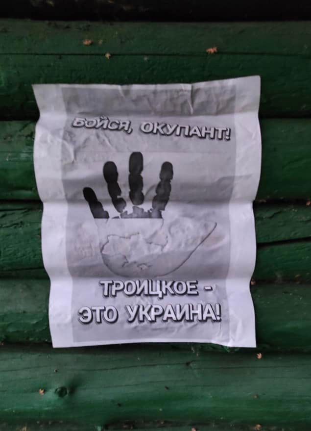 Вулиці Троїцького всіяні "вітальними" листівками для окупантів.
