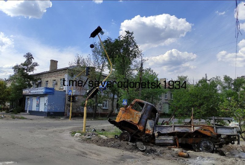 Мешканці Сєвєродонецька показали в мережі машину ополченців, яка підірвалася у центрі міста, розбираючи завали, передає Час Пік.