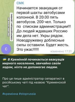 Зокрема, повідомляється, що окупанти поширюють інформацію про "евакуацію" з міста. Куди мають намір вивозити населення - не уточнюється. Проте "евакуація" здійснюватиметься лише за списками "адміністрації".