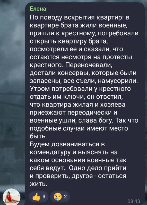 Так, під приводом "перевірки" квартири окупанти можуть залишитися в ній жити. При цьому з'їсти всі припаси і насмітити.