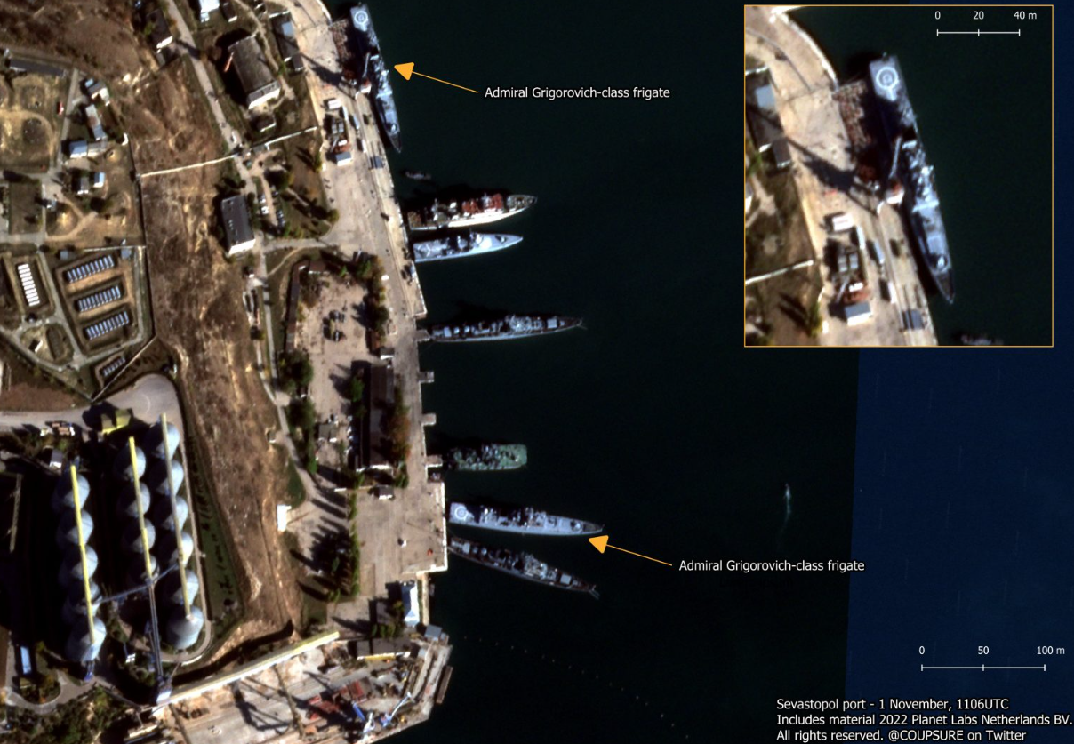 A video showing the drone attack on the port of Sevastopl last Saturday appeared to show the moments just before a drone hit an Admiral Grigorovich-class frigate. Following this video, the fate of the frigate was widely speculated. https://t.co/R2mkKfsa4G