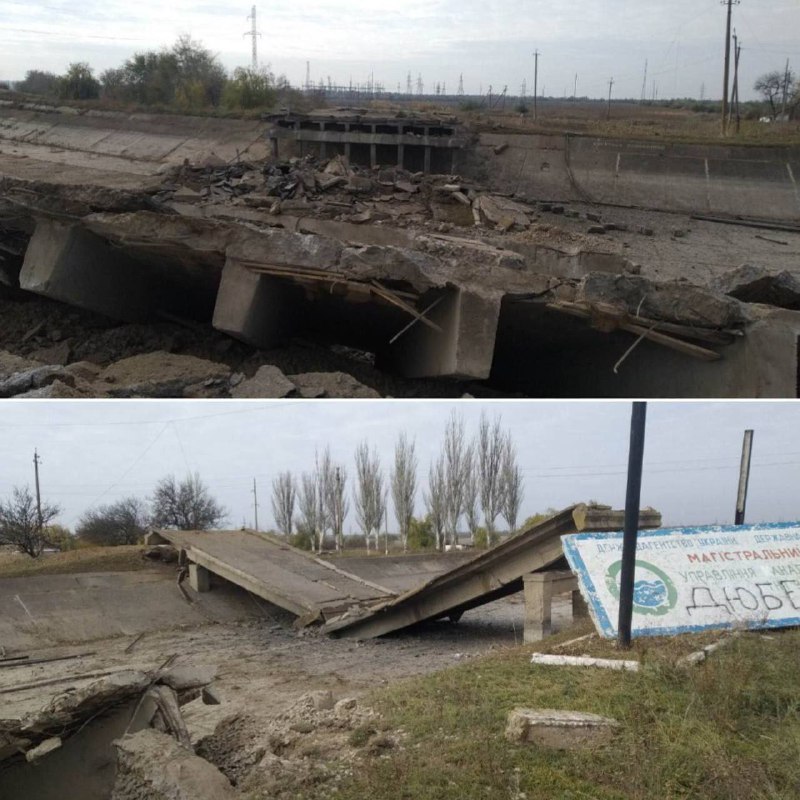Крім того, при виїзді зі Снігурівки у бік Херсона також підірвано мости через канал.