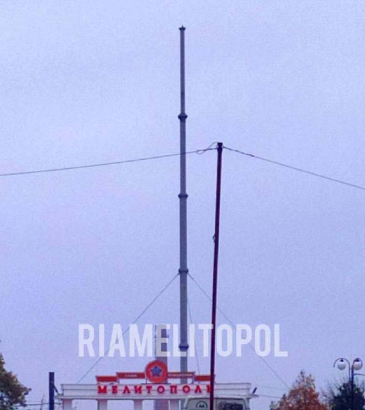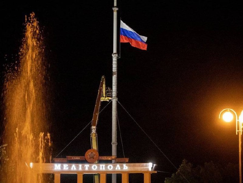 Один із мешканців Мелітополя розповів, що на флагштоку немає верхньої частини, поруч із ним стоїть підйомний кран. Прапори Росії також зникли з флагштоків біля готелю неподалік.