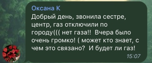 За словами користувачів мережі, яким вдалося вийти на зв'язок з Лисичанськом, у місті на даний момент відсутнє газопостачання. Водночас, на вулиці зима та "мінусова" температура. Про причини відключення газу нічого не відомо.