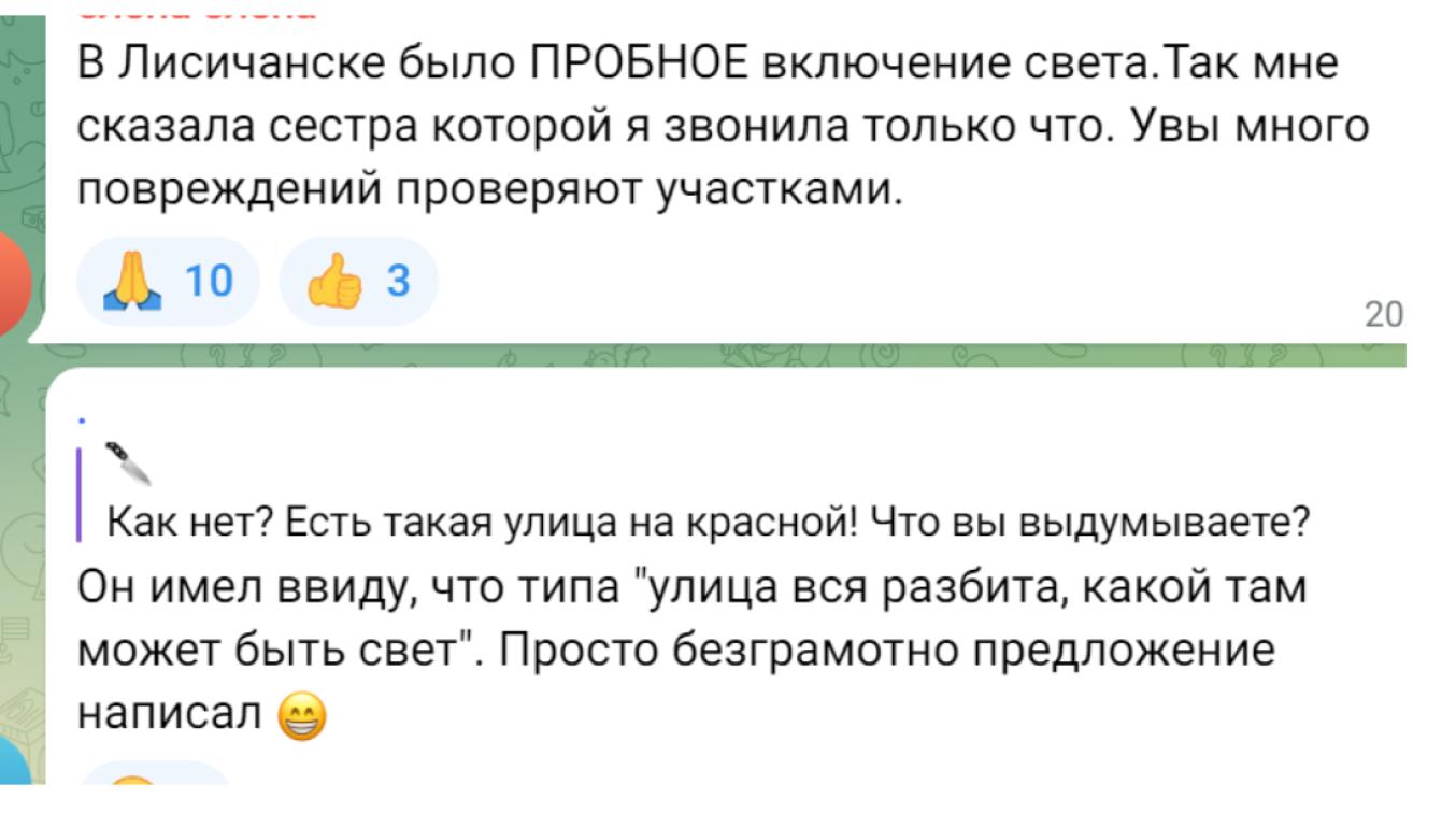 Так, у мережі жителі Лисичанська повідомляють, що були пробні включення світла у місті.