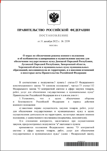 Підвищенням рівня життя зрадникам можна назвати ухвалені днями урядом РФ особливості планування та здійснення у 2023 році закупівель для державних потреб так званої «ЛНР» та потреб муніципальних утворень, що знаходяться на її території.
