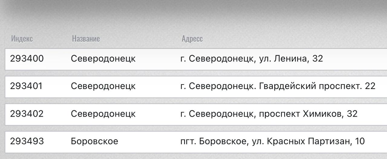 "При написанні адреси до п'ятизначного поштового індексу на початку додається цифра "2" (наприклад, поштовий індекс центрального відділення Лисичанська змінився з "93100" на "293100", за аналогією змінюються інші індекси відділень у регіоні)", - йдеться у повідомленні.