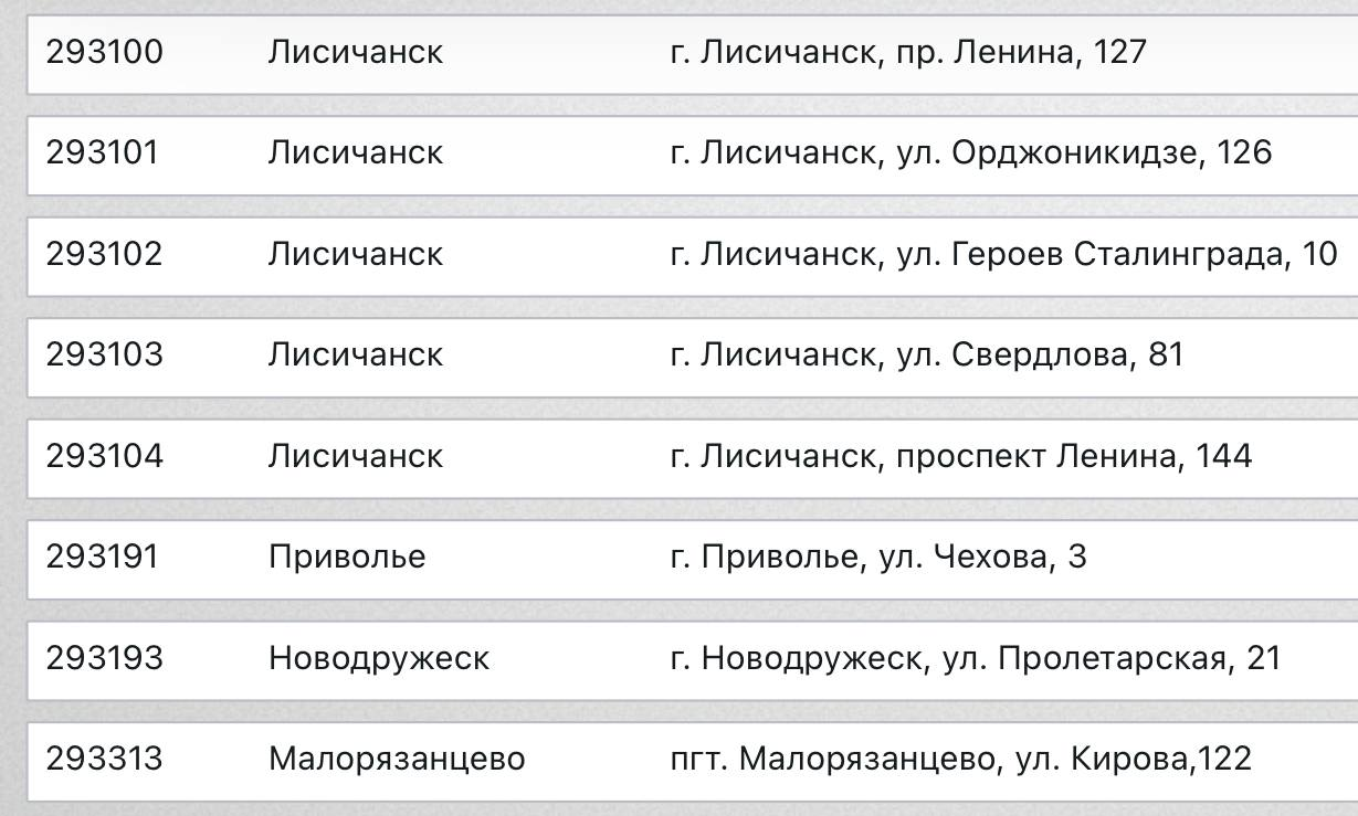 У тимчасово окупованих містах на Луганщині змінився поштовий індекс. Індекси змінилися з п'ятизначних на шестизначні цифри.