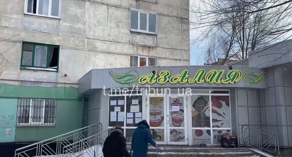 Як показано на фото, снаряд поцілив, ймовірно, прямо у квартиру. Вікно просто винесло. Інші квартири, які видно на кадрах, цілі.