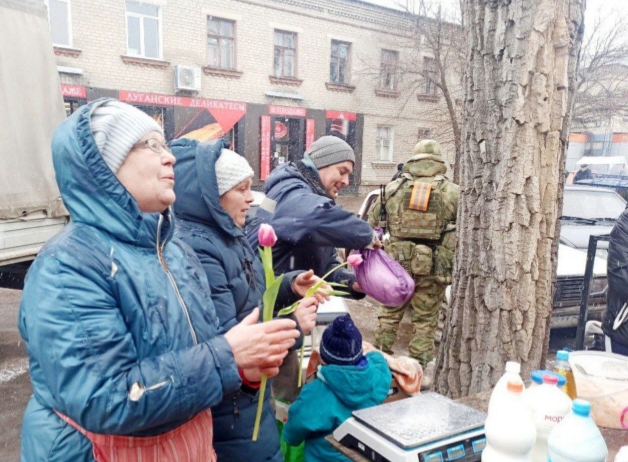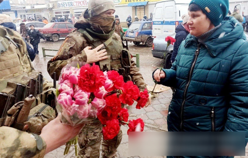 Свято 8 березня все ближче, і на окупованих територіях Луганщини російські оккупанти влаштували показуху, як "заповідала радянська спадщина". У тимчасово окупованого Сєвєродонецька озброєні російські вояки вирішили подарувати місцевим жінкам квіти.
