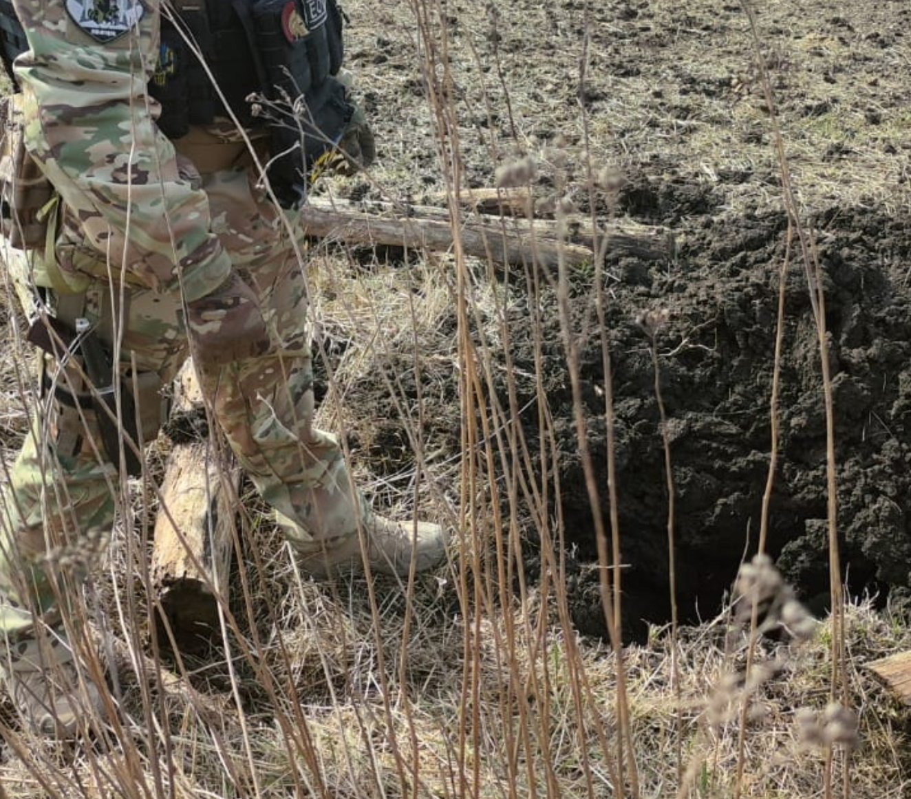 Під час огляду було виявлено глибоку вирву та хвостову частину снаряду РСЗВ "Ураган", яка не містить вибухових речовин і є безпечною.