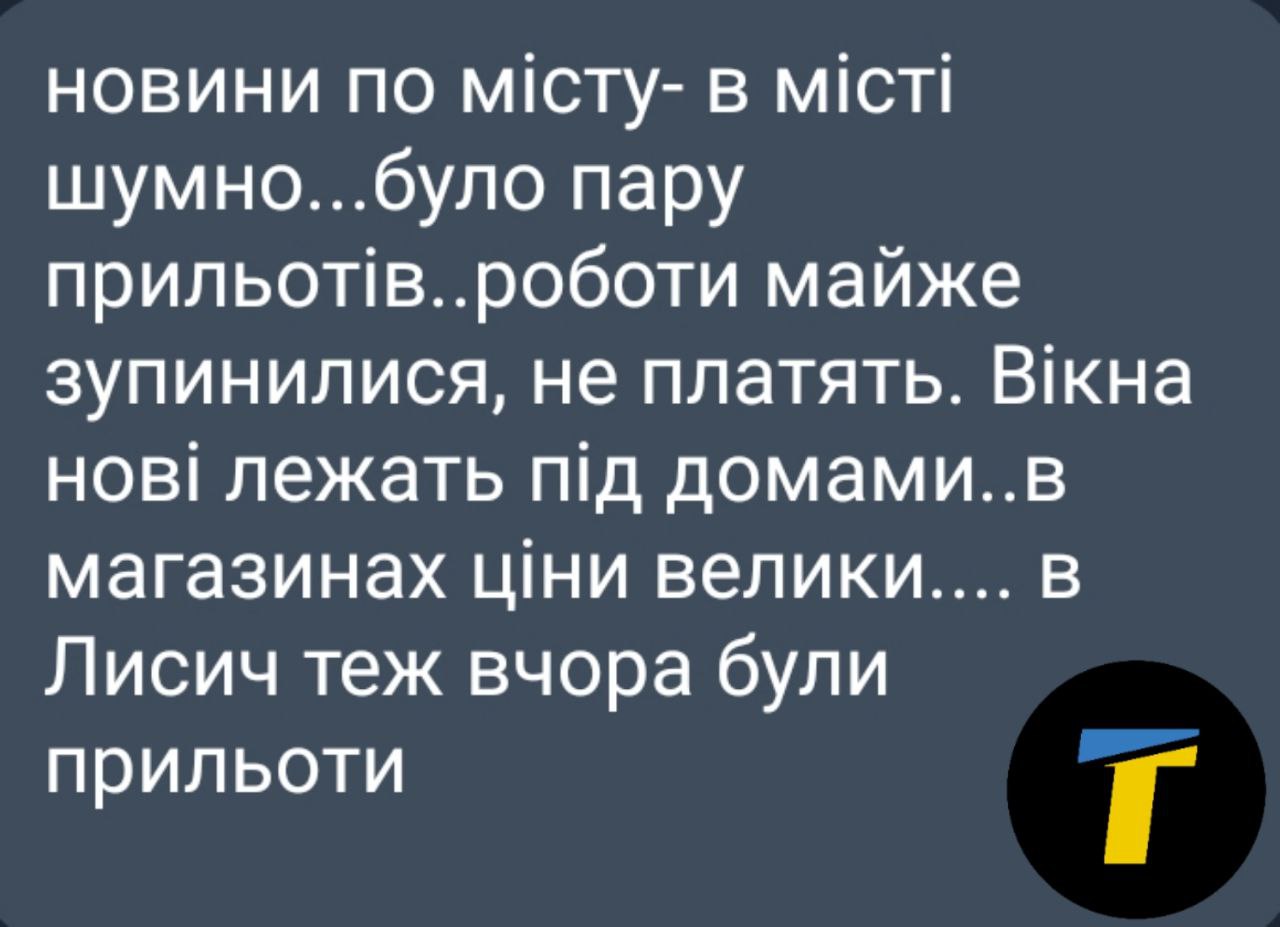 В ТГ - каналі учасники чату повідомляють про те, що в окупованому Лисичанську ситуація схожа - теж вчора "прилітало".
