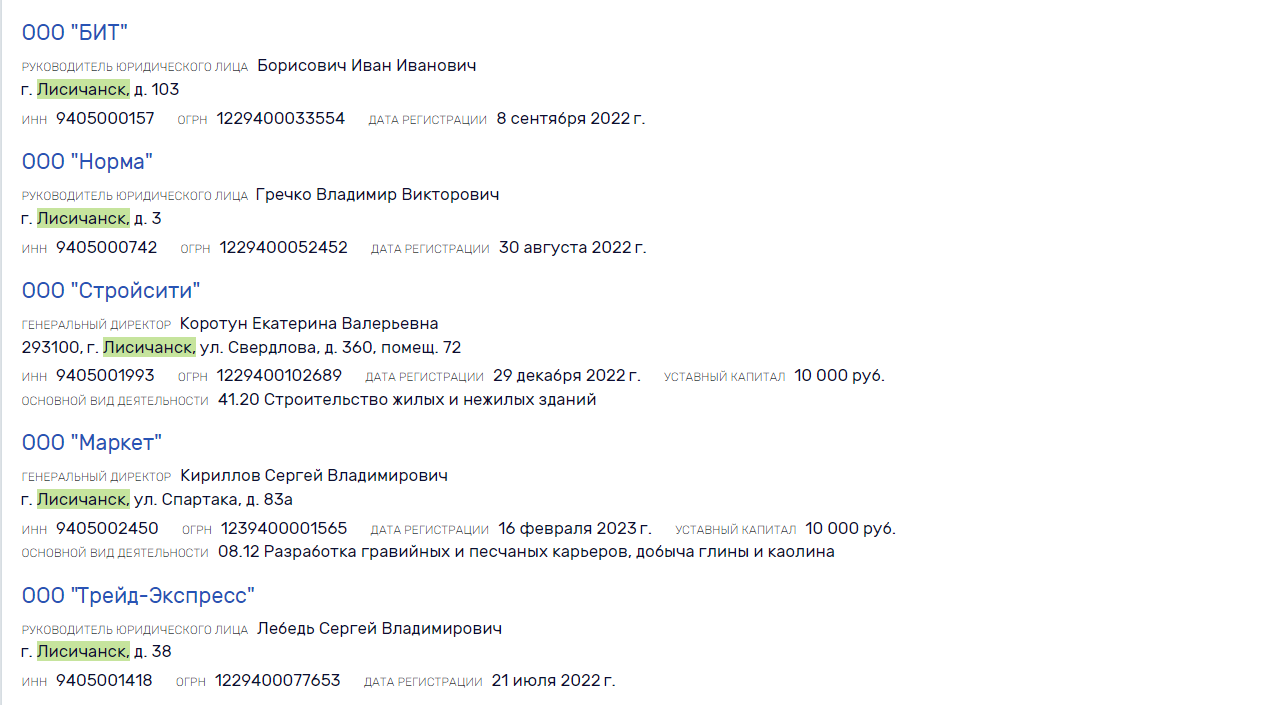 Вже дев’ять місяців Лисичанськ окупований російськими військами. Більша частина населення вимушена була евакуюватися з міста. Дехто релокував свій бізнес. Але в місті залишилися особи, які пішли на співпрацю з загарбниками або перереєстрували підприємства під російське законодавство та будуть сплачувати податки в бюджет країни — агресорки. Редакція Час пік проаналізувала російські відкриті реєстри та ділиться знайденою інформацією зі своїми читачами.