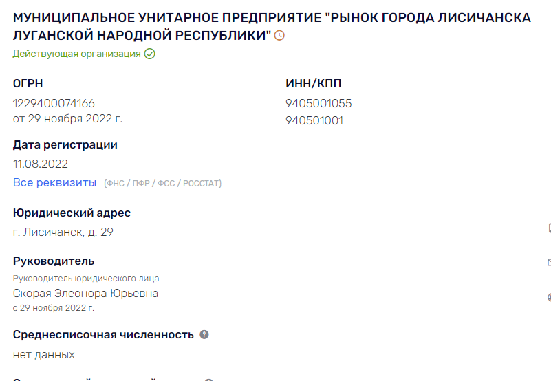 Лисичанським ринком, згідно з відомостями реєстрів, керує колишня дружина гауляйтера Лисичанська Андрія Скорого — Елла Скора.